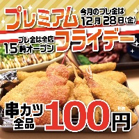本年最後のプレミアムフライデー 12月28日(金)は全店15時OPEN× 串カツ全品108円を実施致します。 ~月末金曜、何しよう? 串カツ田中で大阪きぶん♪~ 株式会社串カ...