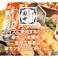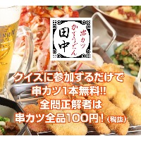 28日(金)プレ金は全店15時OPENし終日串カツ全品108円 ~同時開催:「グノシーQ」×串カツ田中 クイズに全問正解して串カツ全品108円になる特別クーポンをGETしよう!~ ...