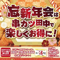 串カツ田中令和初の忘年会がお得に 宴会コース6名以上のご利用でグループ全員に ドリンク割引定期券『田中で飲みpass』プレゼント