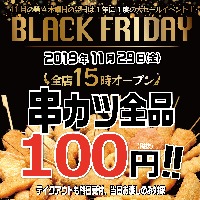 2019年11月はブラックフライデー!一部地域を除く店舗で15時OPEN×串カツほぼ全品100円(税抜)