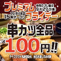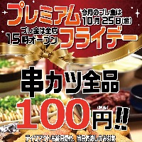 串カツ田中で夏バテ解消しよう! 9月27日(金)のプレミアムフライデーは一部地域を除く店舗で15時OPEN×串カツ全品108円を実施致します。 ~月末金曜、何しよう? 串カツ田中で大阪...