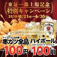 ~今までとこれからのご愛顧に感謝して~ 2019年6月21日(金)~6月30日(日)の10日間、全国で 「東証一部上場記念特別キャンペーン」を実施いたします。 ー期間中いつでも何度でも串カツ全...
