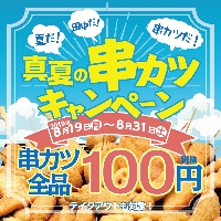 2019年8月19日(月)~8月31日(土)の13日間、全国で 『真夏の串カツキャンペーン』を実施いたします。 ─期間中いつでも何度でも串カツ全品100円─