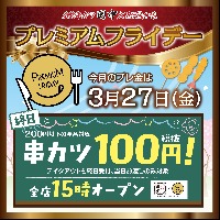 新たな門出のお祝いは串カツ田中プレミアムフライデーで! 3月27日(金)のプレミアムフライデーは 15時OPEN(一部店舗除く)×串カツほぼ全品100円(税抜)を実施致します。 ~月...