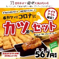 コロナに負けるな! 日本応援キャンペーン! 「コロナにカツセット」 567円(税抜)を販売いたします。 株式会社串カツ田中ホールディングス(本社:東京都品川区東...