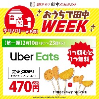 「デリバリーがお得!おうちで田中WEEK」 〈第一弾〉Uber Eatsキャンペーン「一つ頼むともう一つ無料」