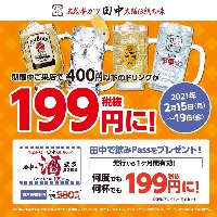飲むなら串カツ田中へ! 2月15日(月)~19日(金)期間限定 来店者全員にほぼ全品ドリンク199円で提供!