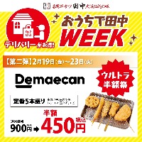 「デリバリーがお得!おうちで田中WEEK」 〈第二弾〉出前館キャンペーン「ウルトラ半額祭」!