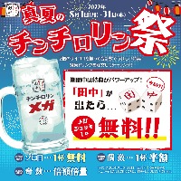 暑い夏は串カツ田中で一杯を! 『真夏のチンチロリン祭』キャンペーン実施 ~サイコロを振って「田中」の目がでたら メガジョッキが1杯無料に!~