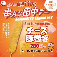 毎月11日は「串カツ田中デー」8月はチーズを豚肉で巻いた「チーズ豚巻き」!! ~大好評豚巻きシリーズ第4段~