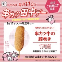 毎月11日は「串カツ田中デー」として限定メニュー販売 ~第一弾は肉好きにはたまらない「串カツ牛の豚巻き」~