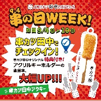 株式会社串カツ田中ホールディングス(本社:東京都品川区東五反田、代表取締役社長:坂本 壽男)が展開する「串カツ田中」は、2023年9月4日(月)~10日(日)の期間限定で、「9」と「4」の...