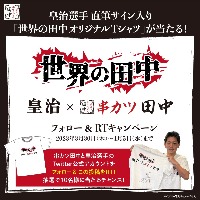 皇治選手直筆サイン入り!公式Twitterフォロー&リツイートで 「世界の田中オリジナルTシャツ」をプレゼント! ~串カツ田中と一緒に皇治選手を応援しよう~